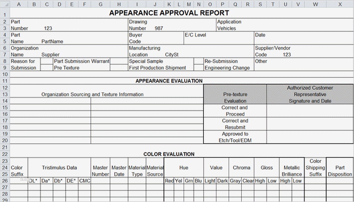 Ppap Vorlage Excel Großartig Ppap forms In Excel Ppap Templates
