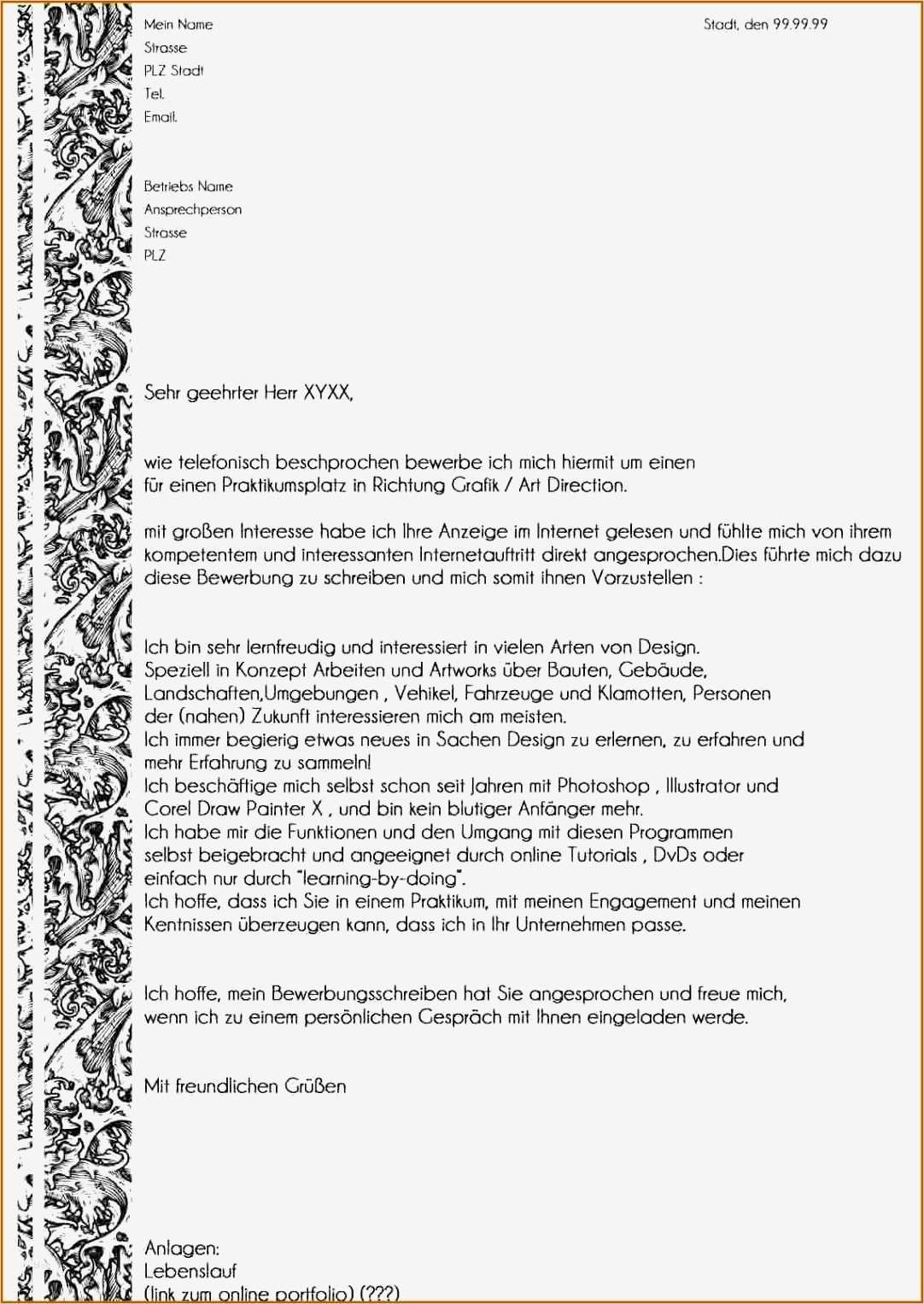 Schön Praktikum Anschreiben Vorlage