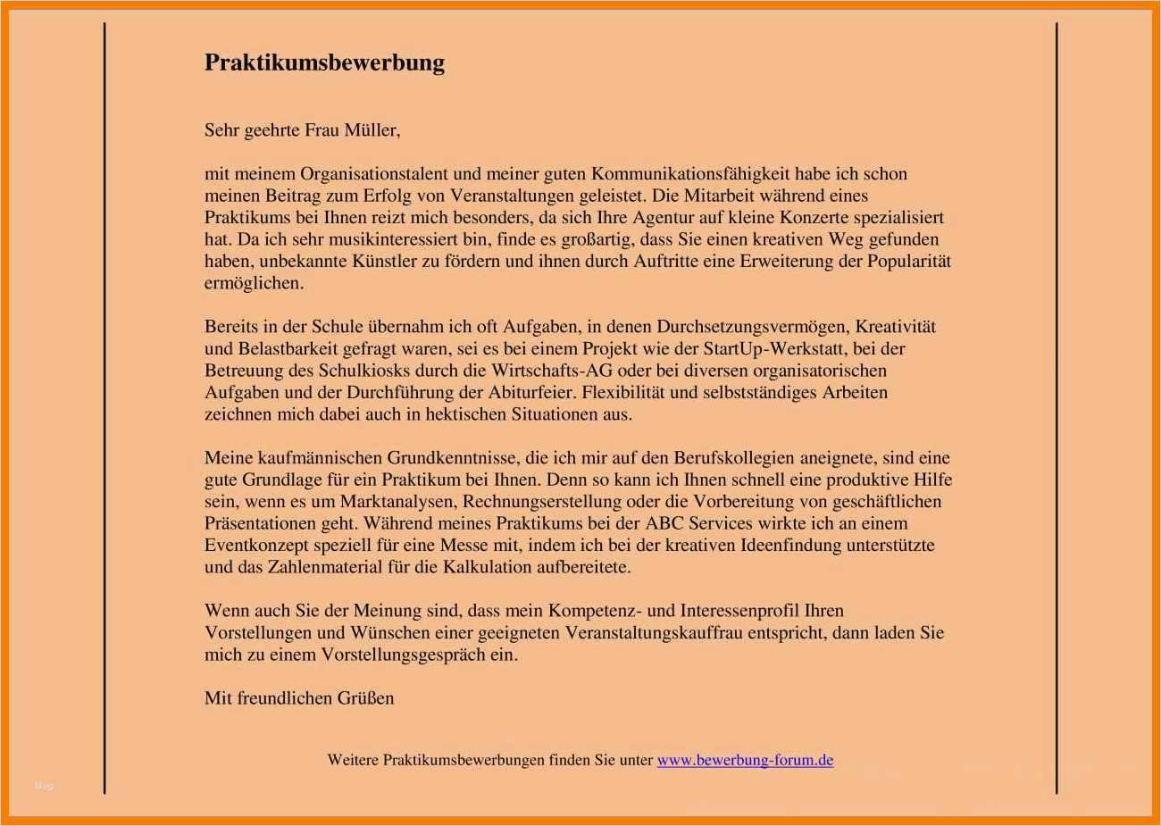 Einzigartig Praktikumsbewerbung Muster Vorlage
