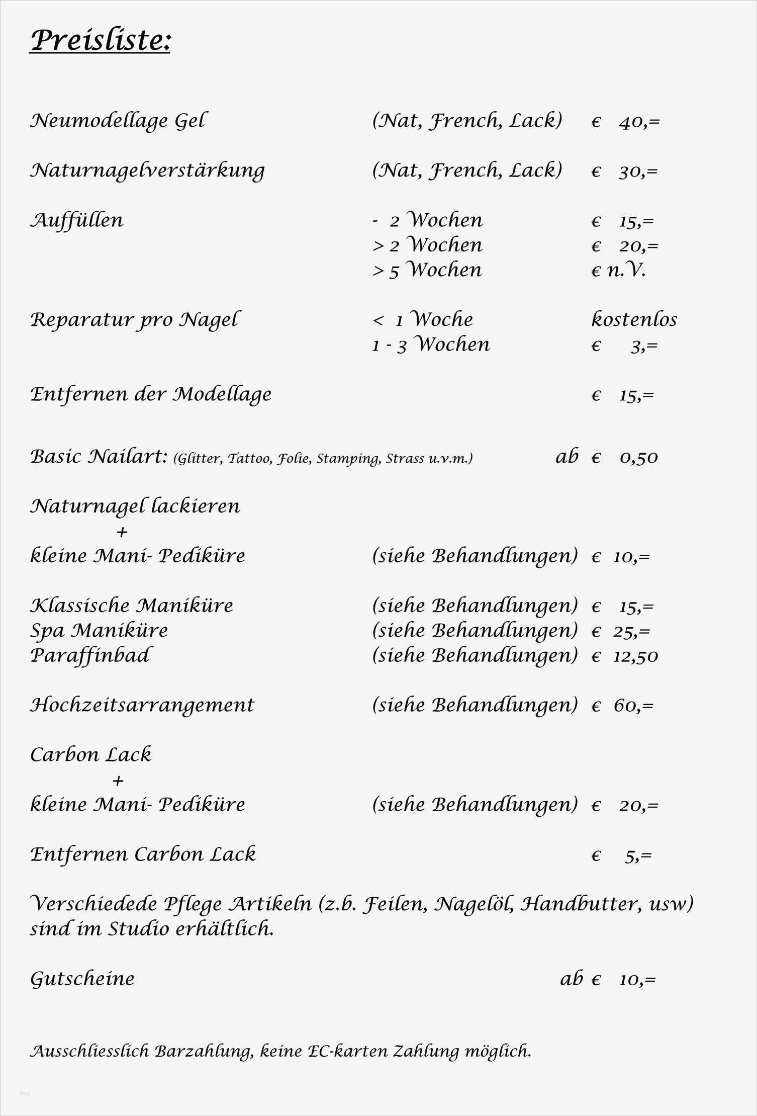 Preisliste Nagelstudio Vorlage Genial Preisliste