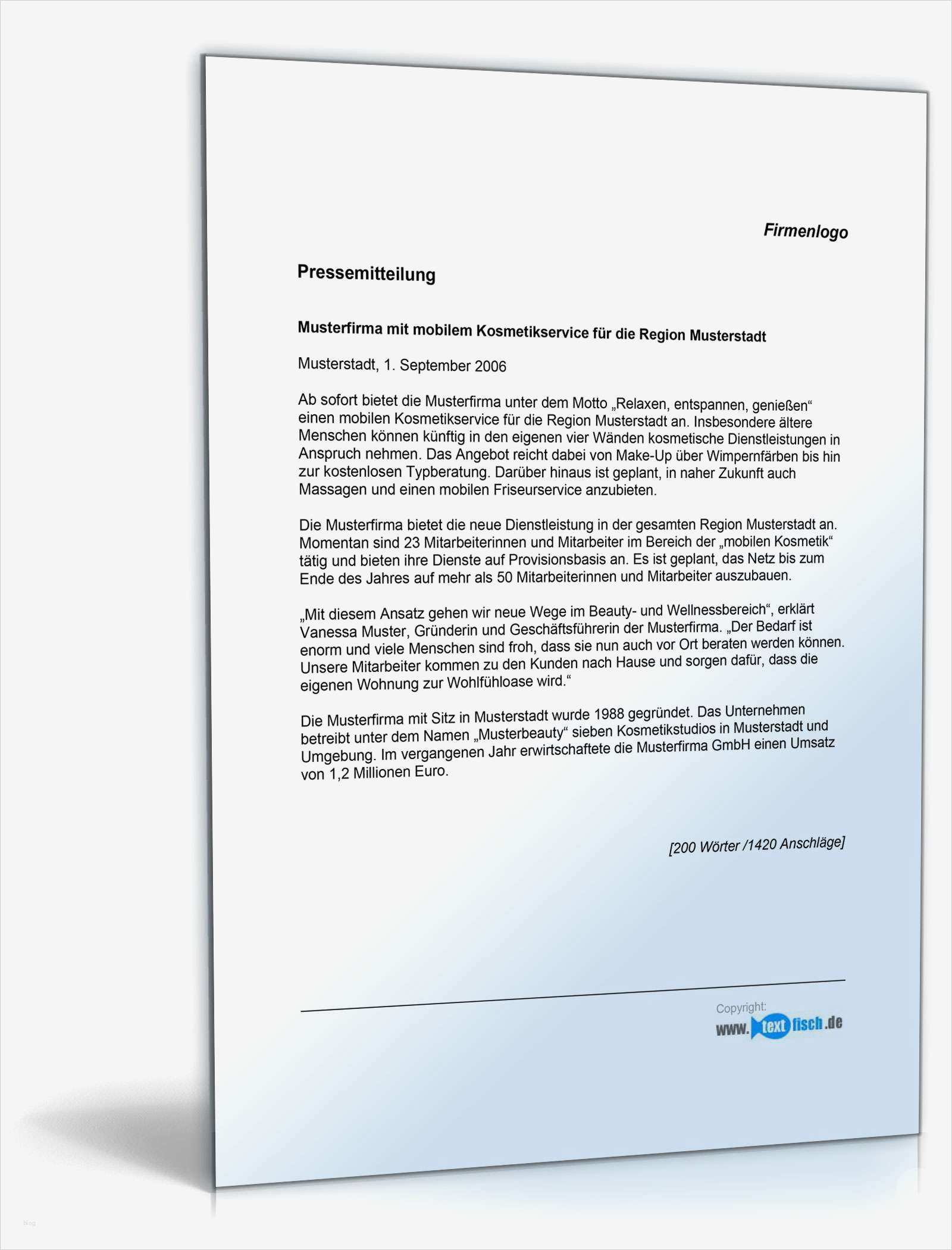 Pressemitteilung Vorlage Cool Pressemitteilung Vorstellung Einer Neuen Dienstleistung