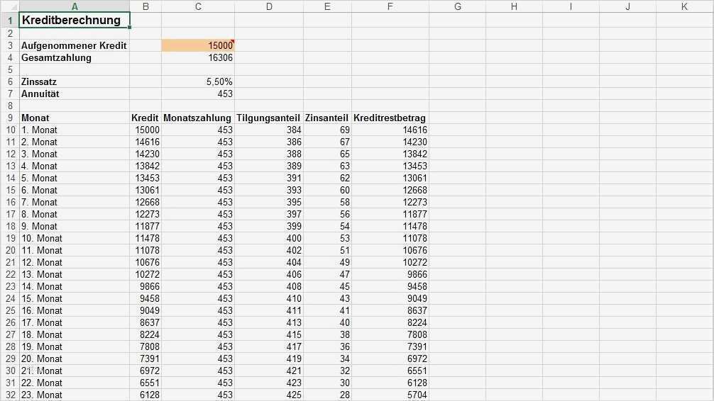 Ratenplan Vorlage Erstaunlich Kreditberechnung Mit Excel Download Chip