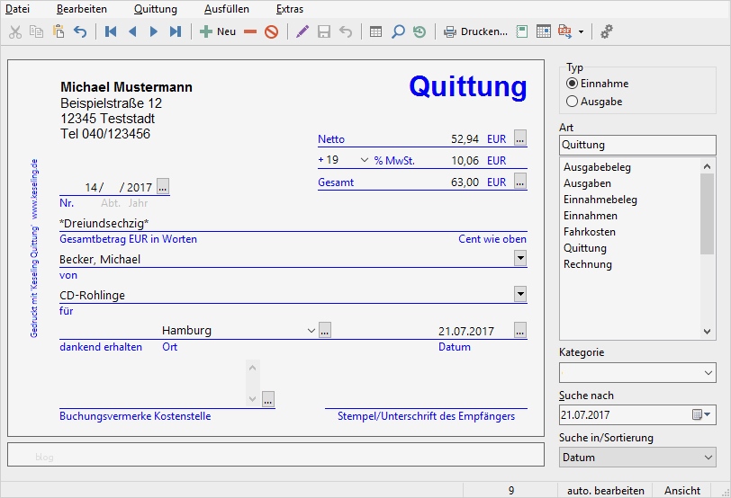 Rechnung Ausstellen Vorlage Neu Keseling software Quittung Bildschirmfoto