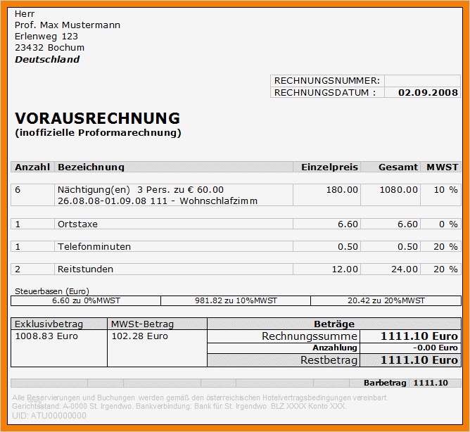 Luxus Rechnung Englisch Vorlage