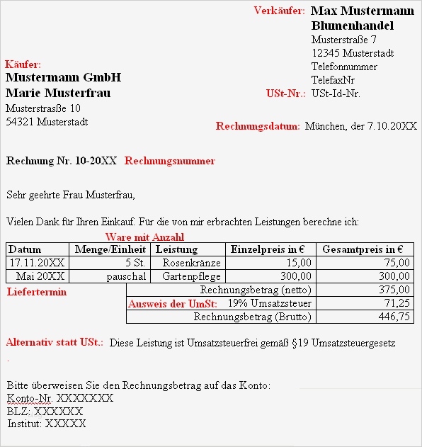 Elegant Rechnung Schreiben Kleingewerbe Vorlage