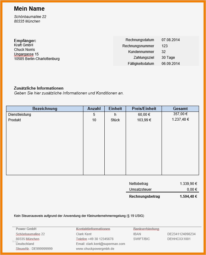 Erstaunlich Rechnung Vorlage
