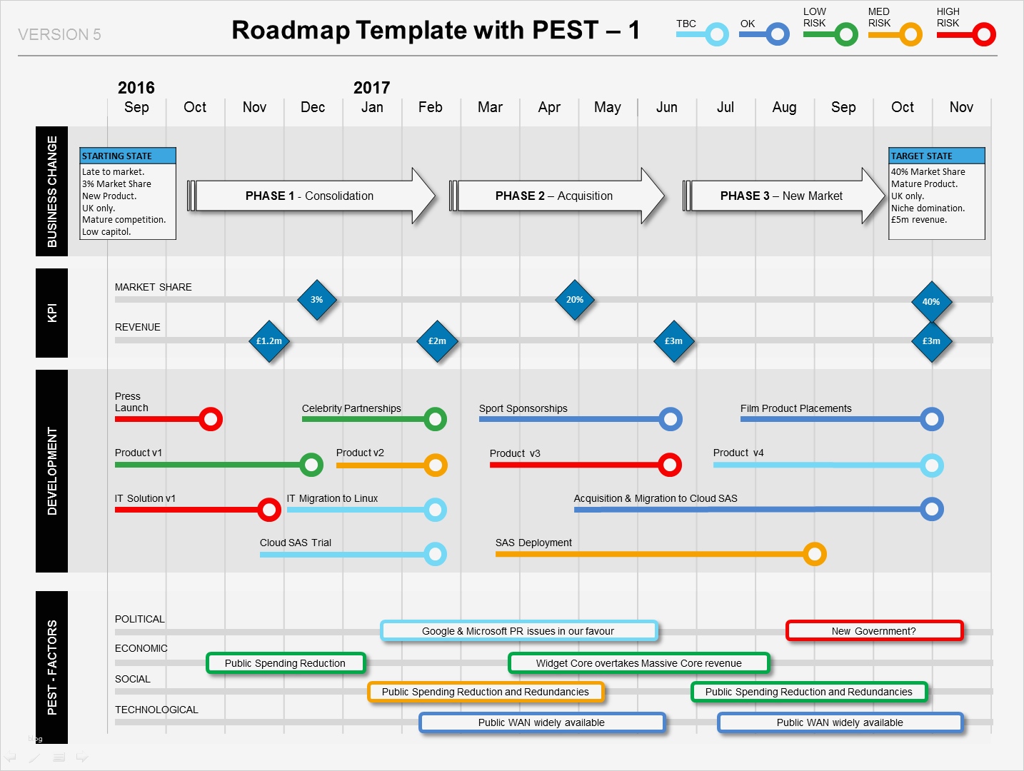 Roadmap Vorlage Powerpoint Einzigartig Roadmap with Pest Factors Phases Kpis & Milestones Ppt