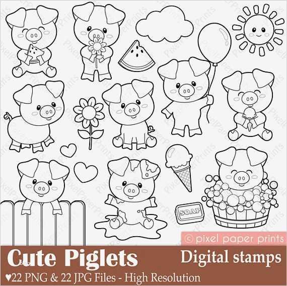 Schrumpffolie Vorlagen Wunderbar Cute Piglets Digital Stamps Clipart