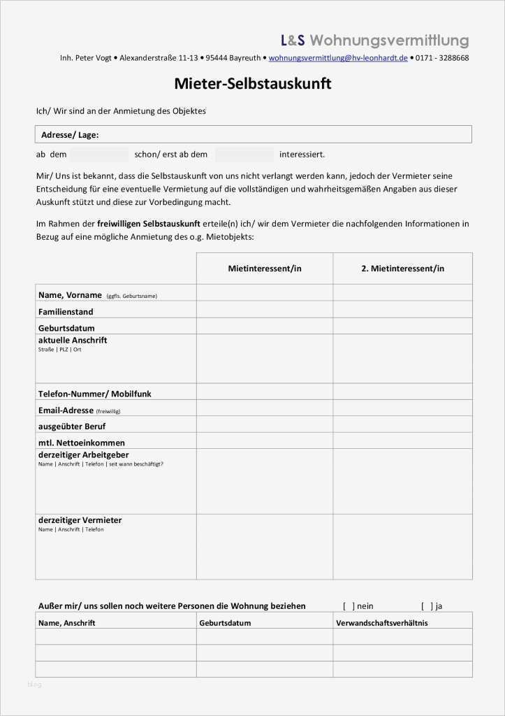 Gut Selbstauskunft Vorlage Word