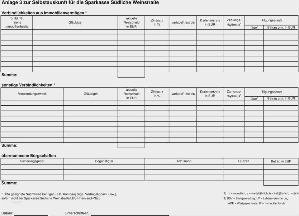 Neu Selbstauskunft Vorlage