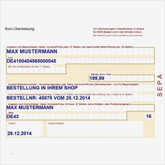 Gut Sepa überweisungsformular Vorlage Pdf