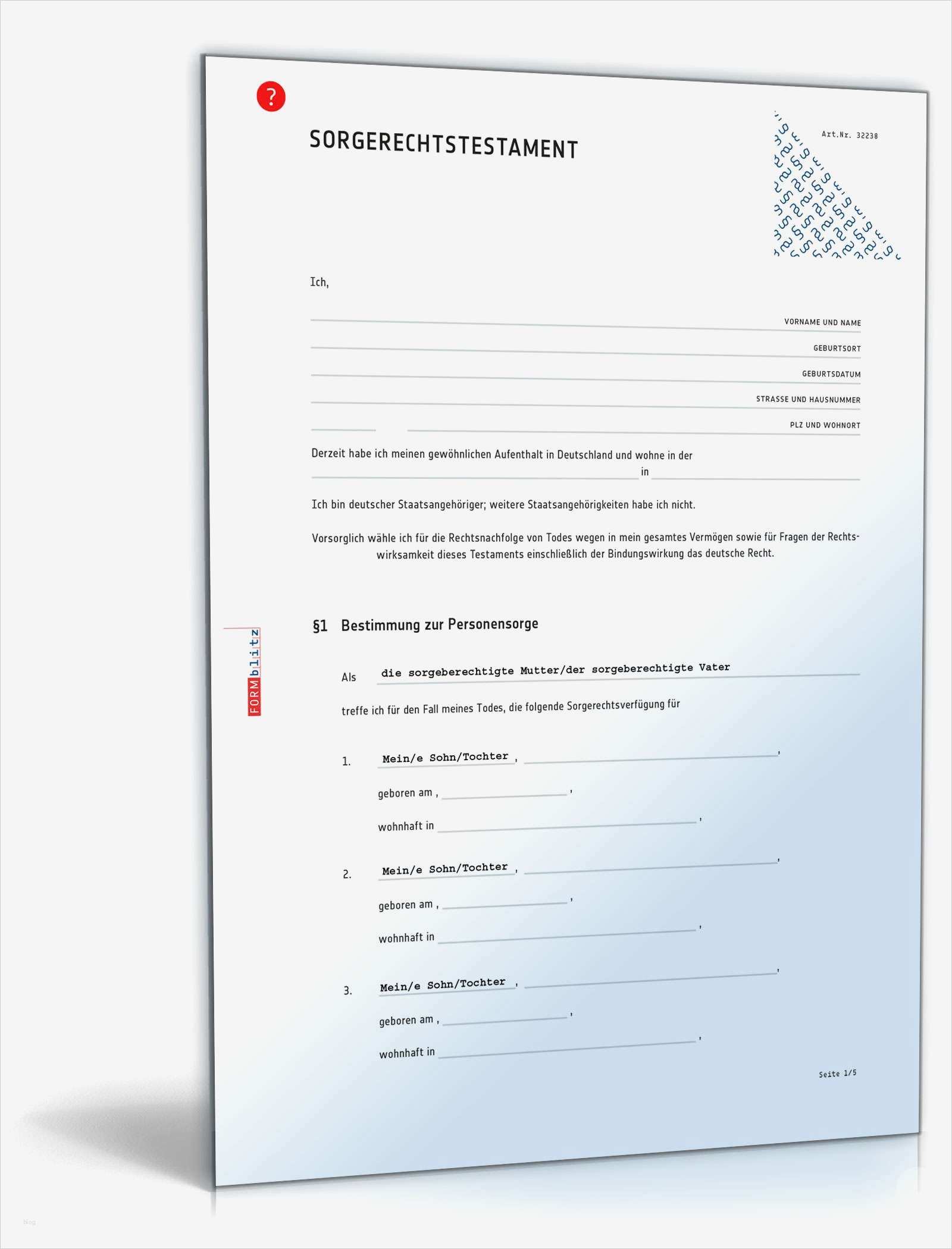 Sorgerechtsverfügung Alleinerziehende Vorlage Gut sorgerechtstestament Alleinerziehende