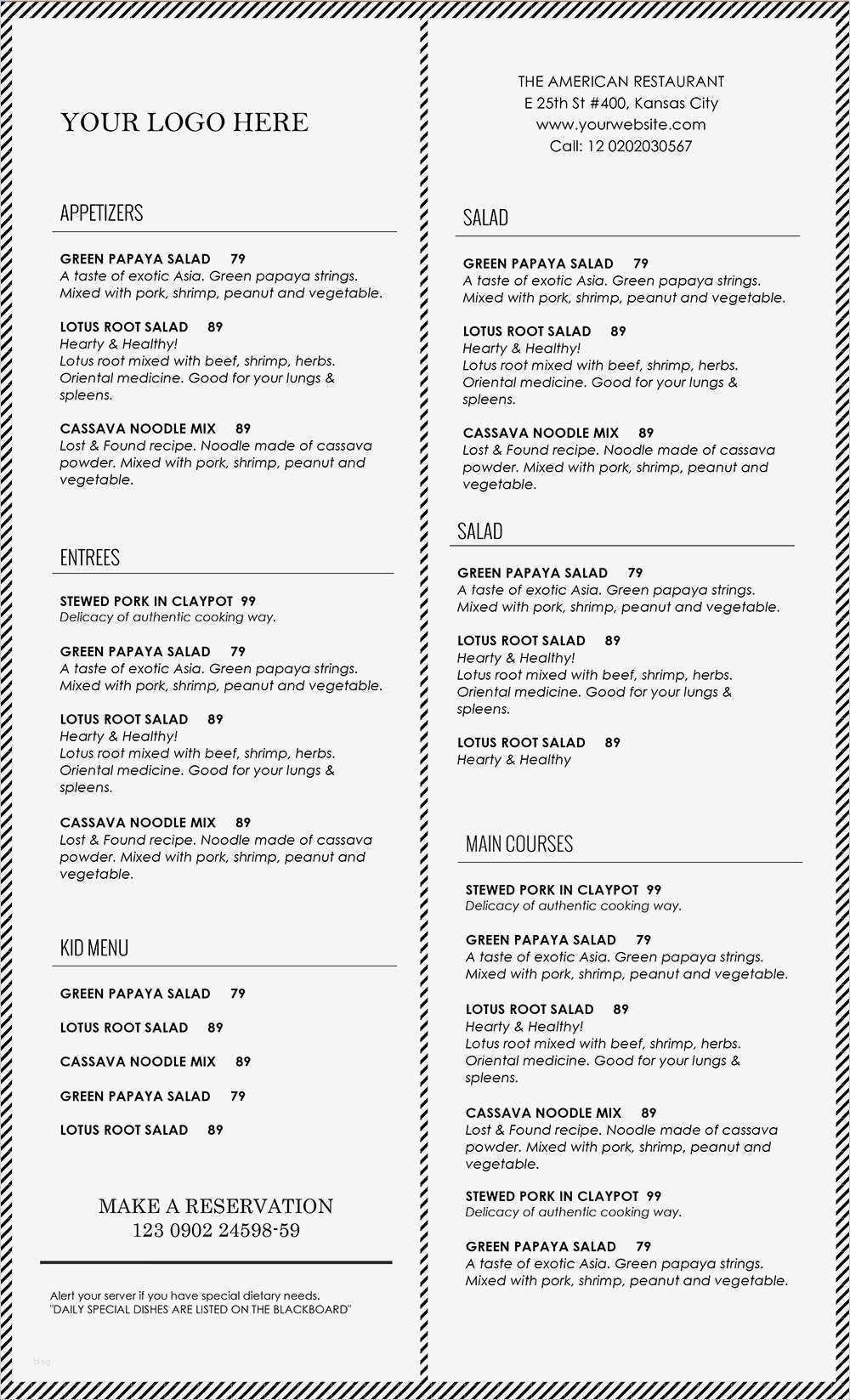 Beste Speisekarte Vorlage Word