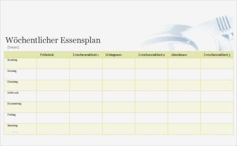 Wunderbar Speiseplan Für Eine Woche Vorlage