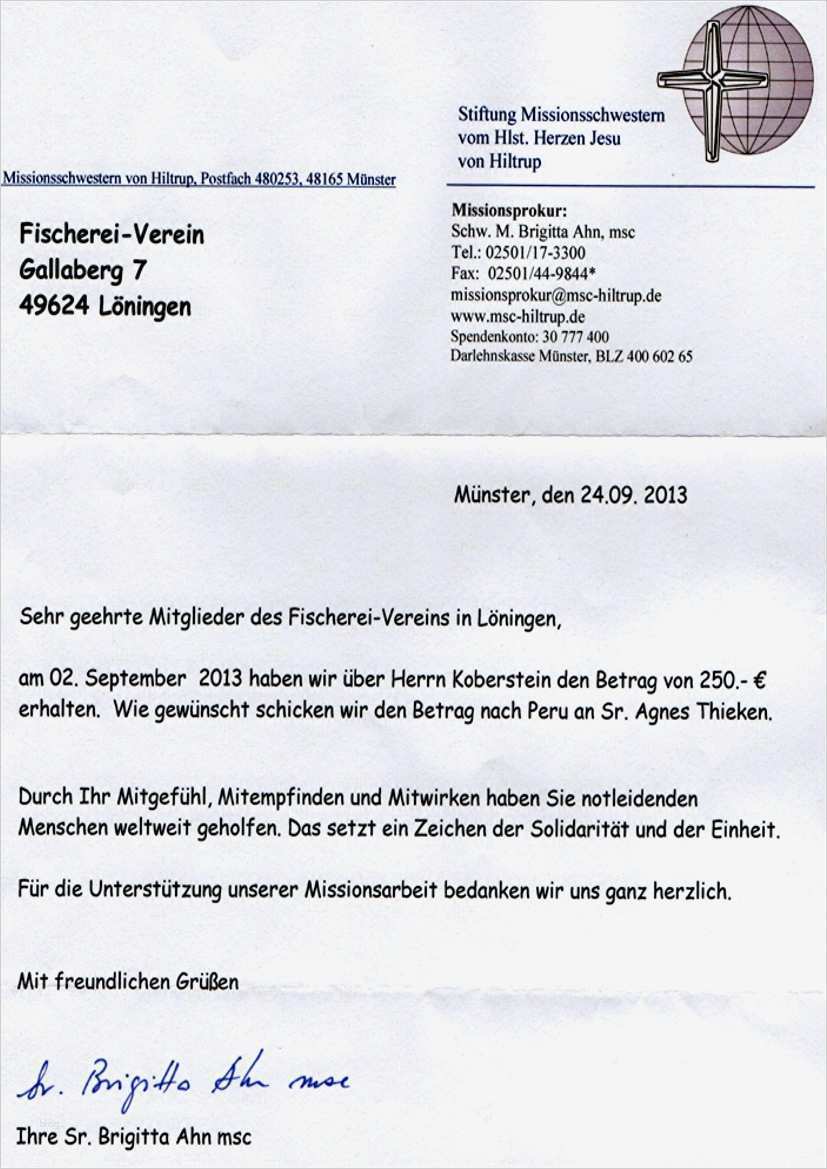 Spendenbrief Schreiben Vorlage Bewundernswert Fischereiverein Löningen E V