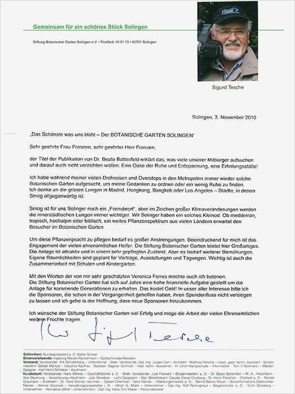 Galerie von Spendenbrief Schreiben Vorlage Luxus Botanischer Garten solingen Spendenbriefe