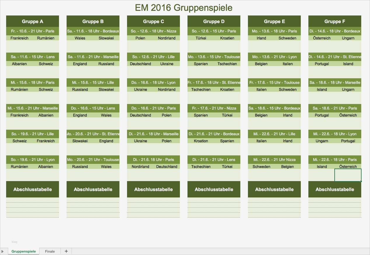 Spielplan Erstellen Excel Vorlage Bewundernswert Em Spielplan Gruppenspiele