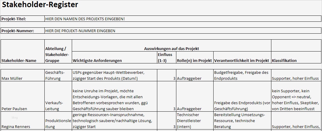 Stakeholderanalyse Vorlage Cool Projektmanagement24 Blog Stakeholder Register In Excel