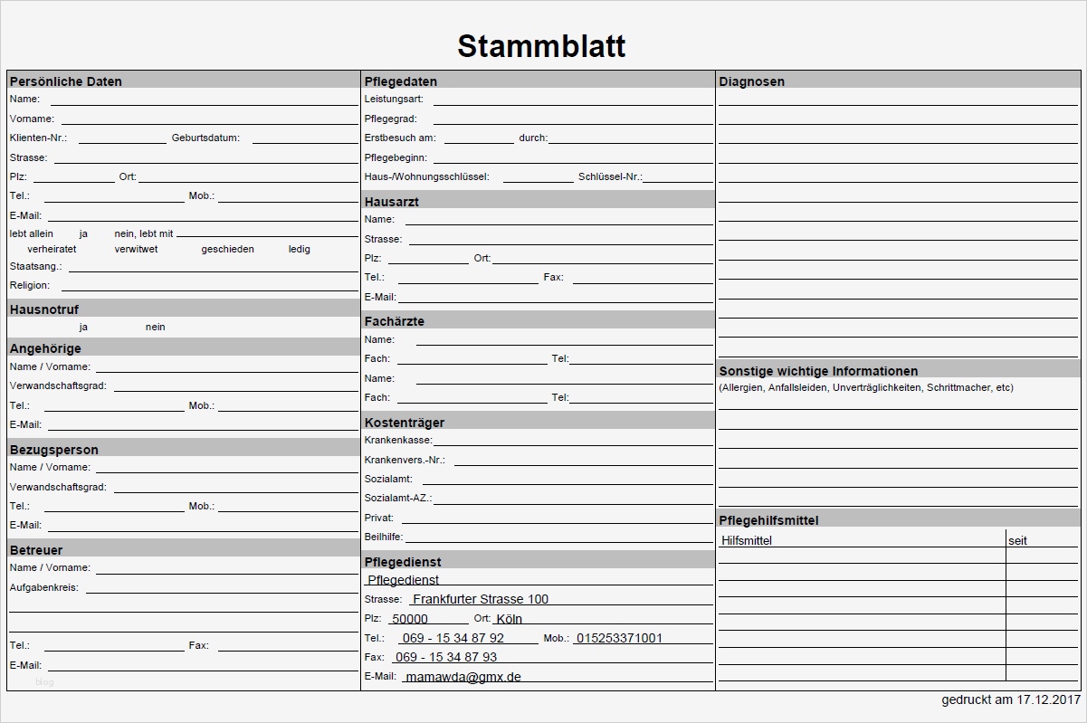 Wunderbar Stammblatt Pflege Vorlage