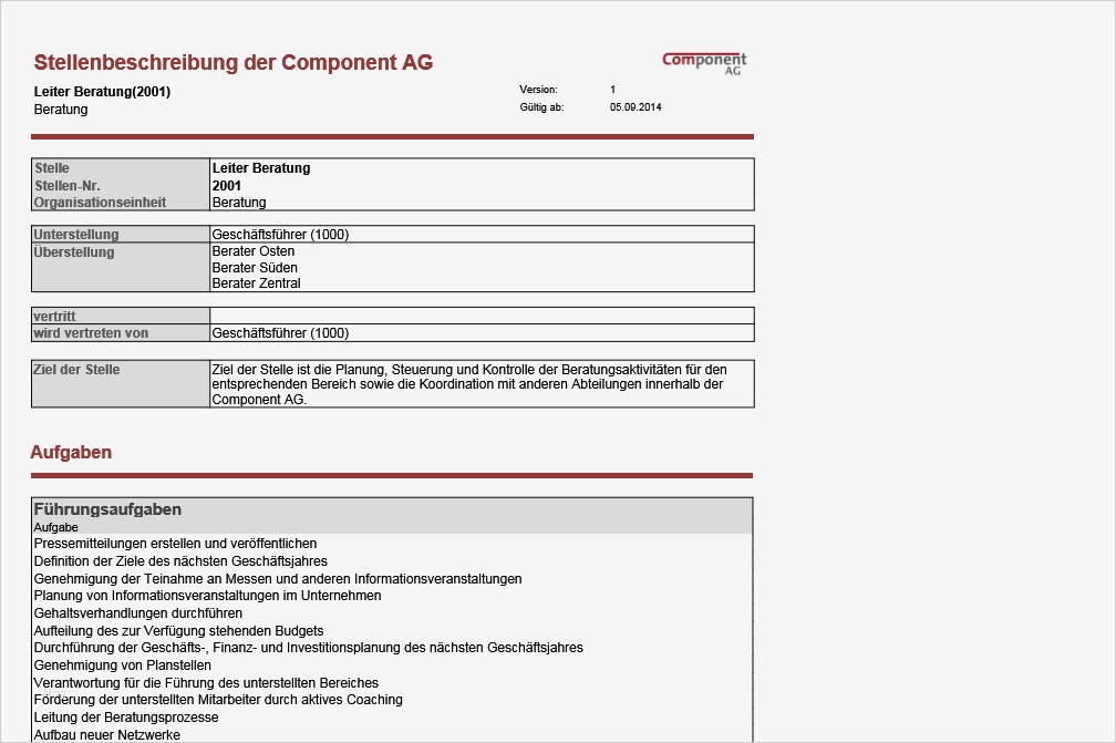 Schön Stellenbeschreibung Vorlage Excel