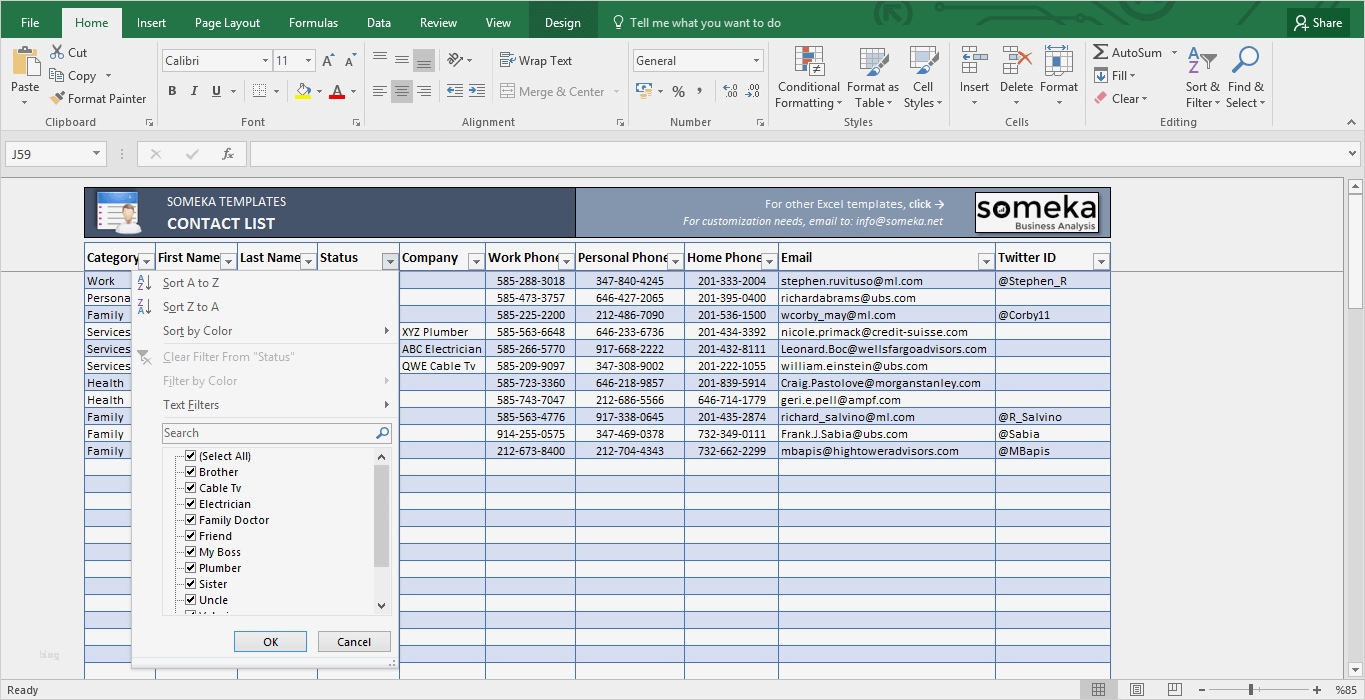 Store Check Vorlage Süß Contact List Template In Excel