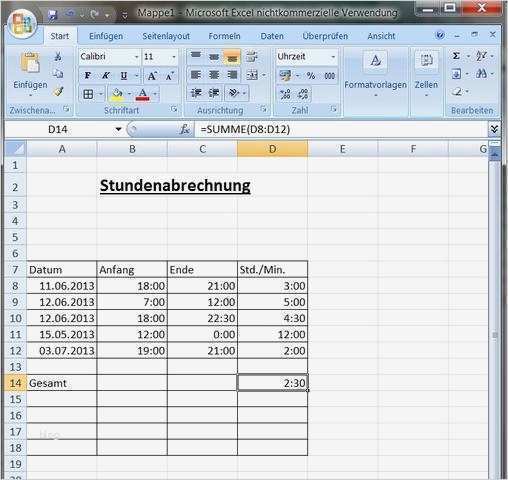Angenehm Stundenabrechnung Excel Vorlage