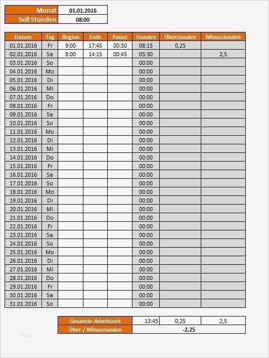 Elegant Stundenzettel Excel Vorlage Kostenlos 2016