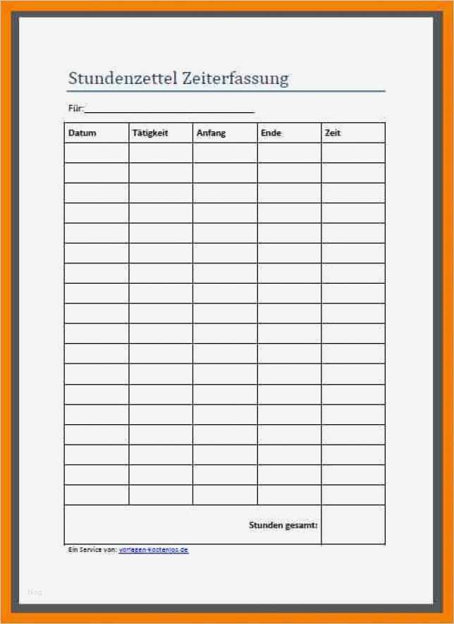 Neu Stundenzettel Vorlage Kostenlos