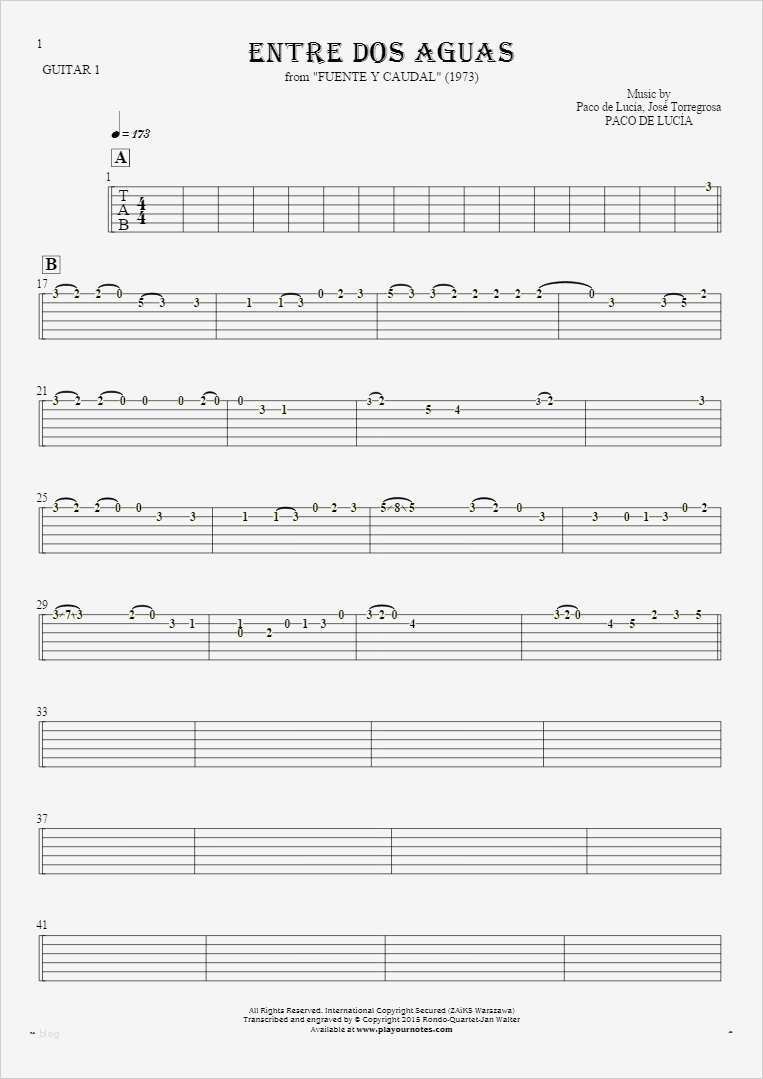 Tabulatur Gitarre Vorlage Schönste Entre Dos Aguas Tabulatur Für Gitarre Gitarrestimme 1