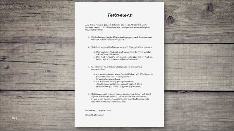 Testament Vorlage Muster Erstaunlich Testament Vorlage Und Muster Schweiz Kostenlos Herunterladen