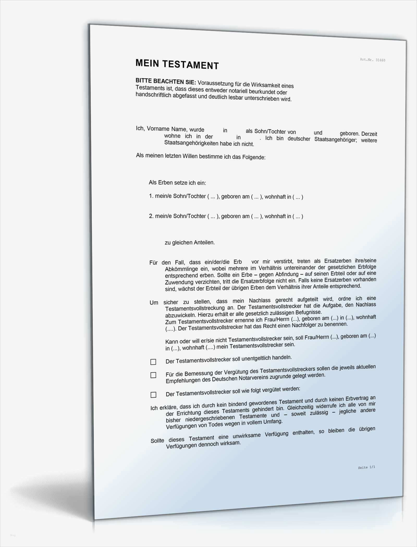 Luxus Testament Vorlage Pdf