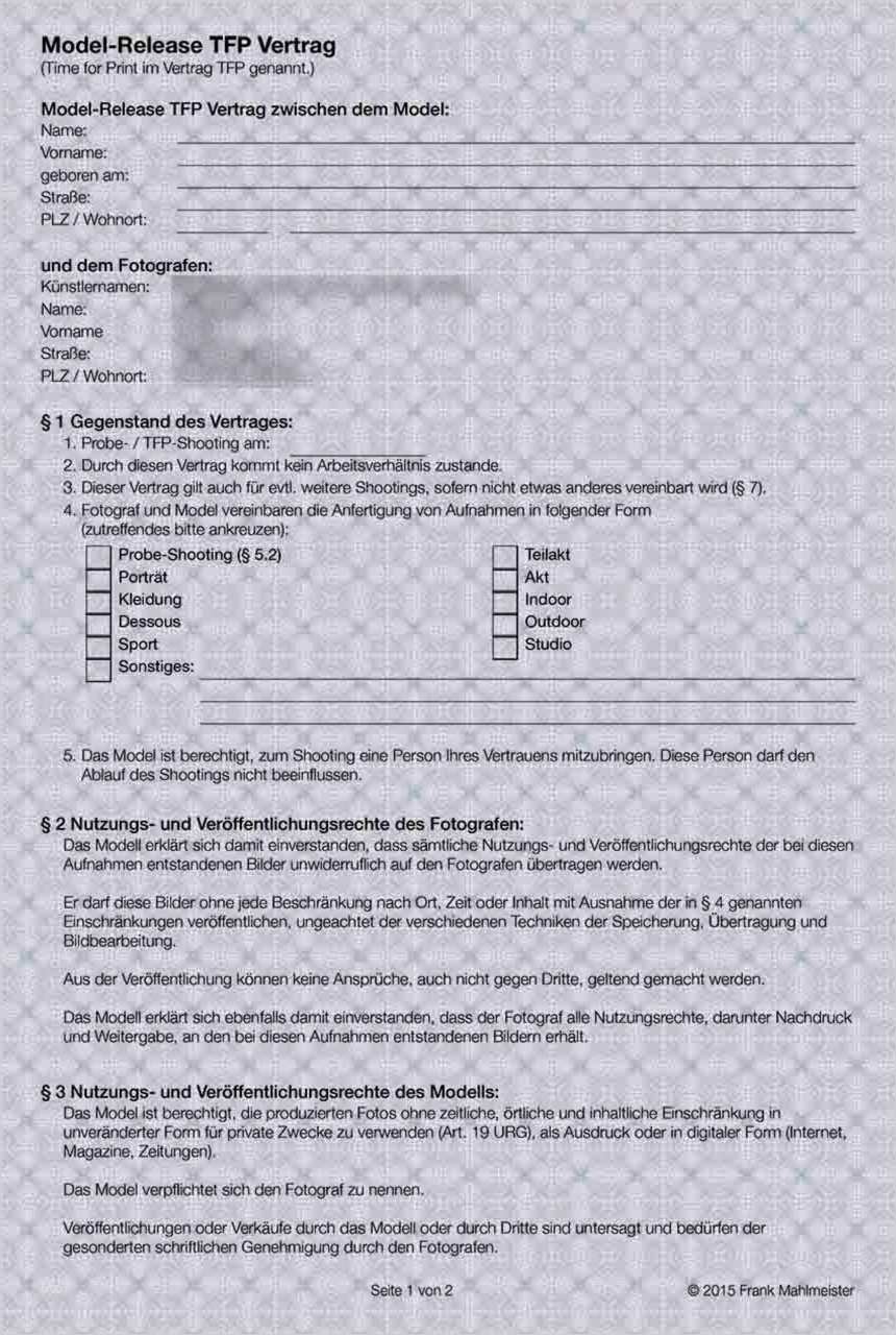 Wunderbar Tfp Vertrag Vorlage