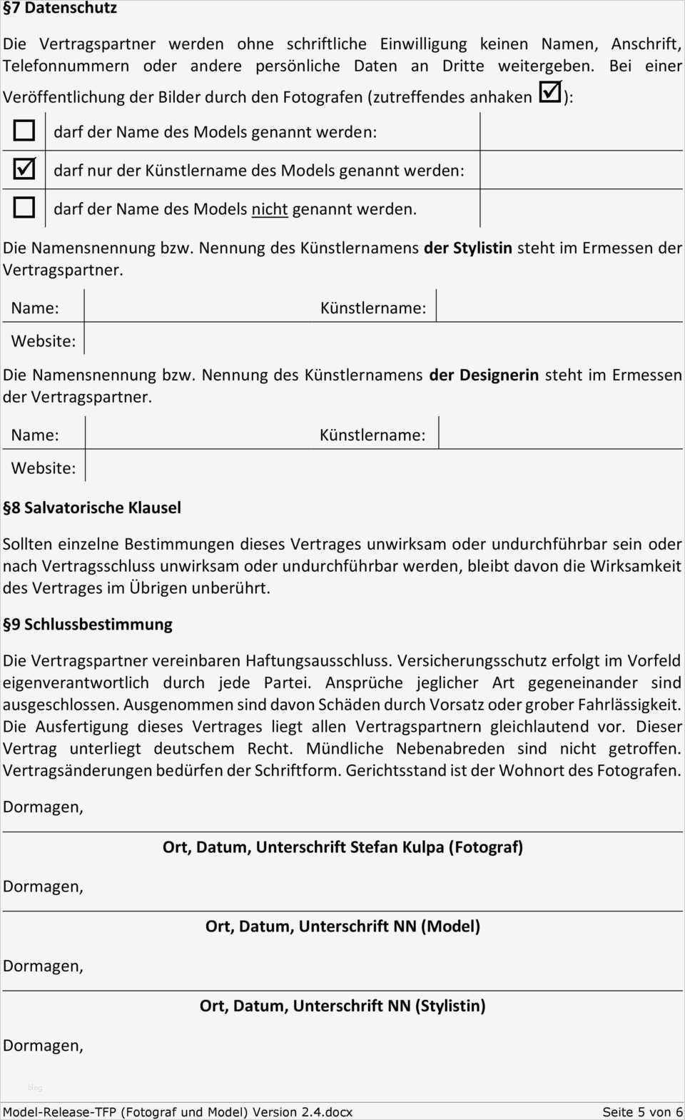Wunderbar Tfp Vertrag Vorlage