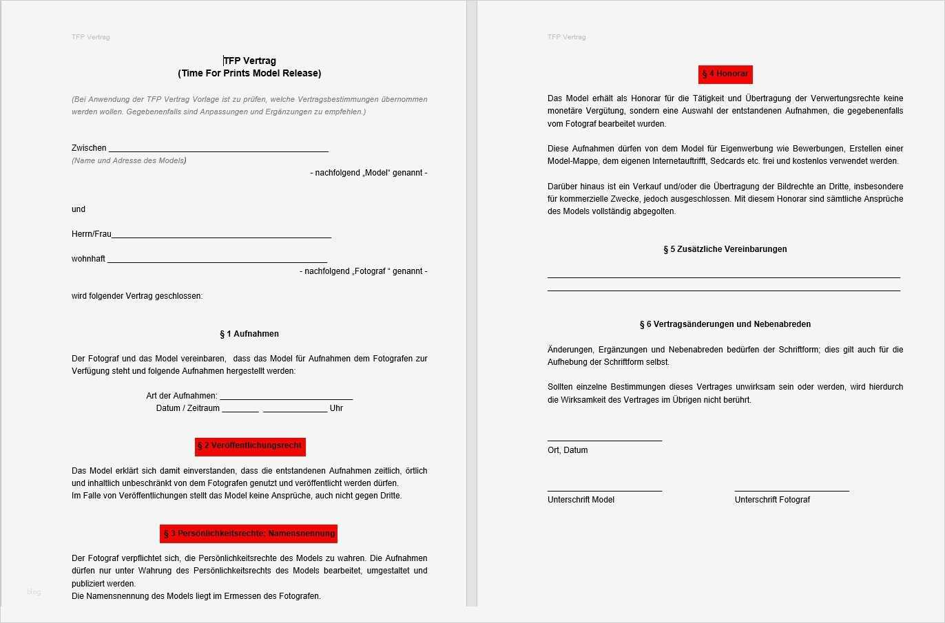 Wunderbar Tfp Vertrag Vorlage