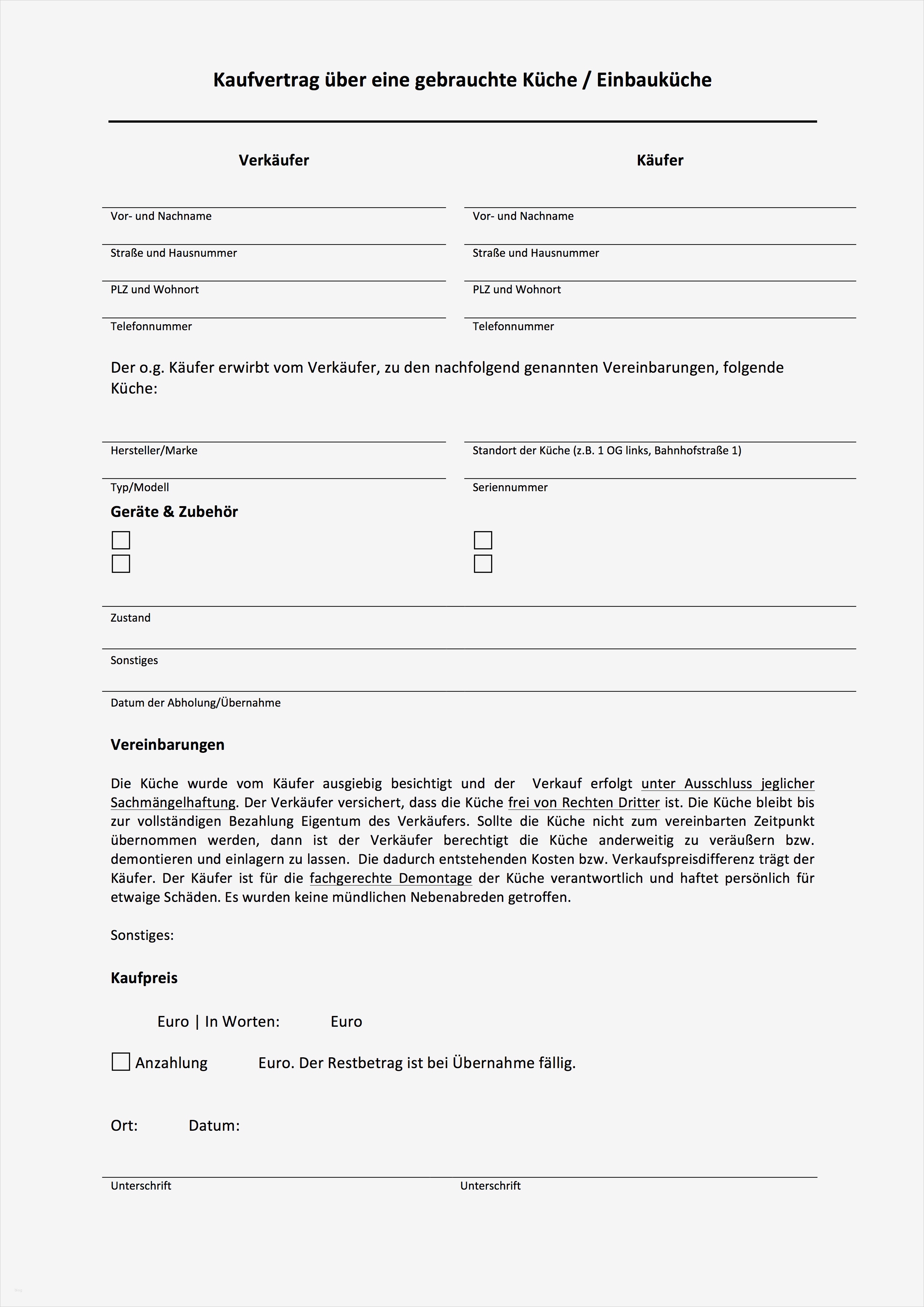 übernahme Möbel Nachmieter Vorlage Wunderbar Kaufvertrag Küche Pdf
