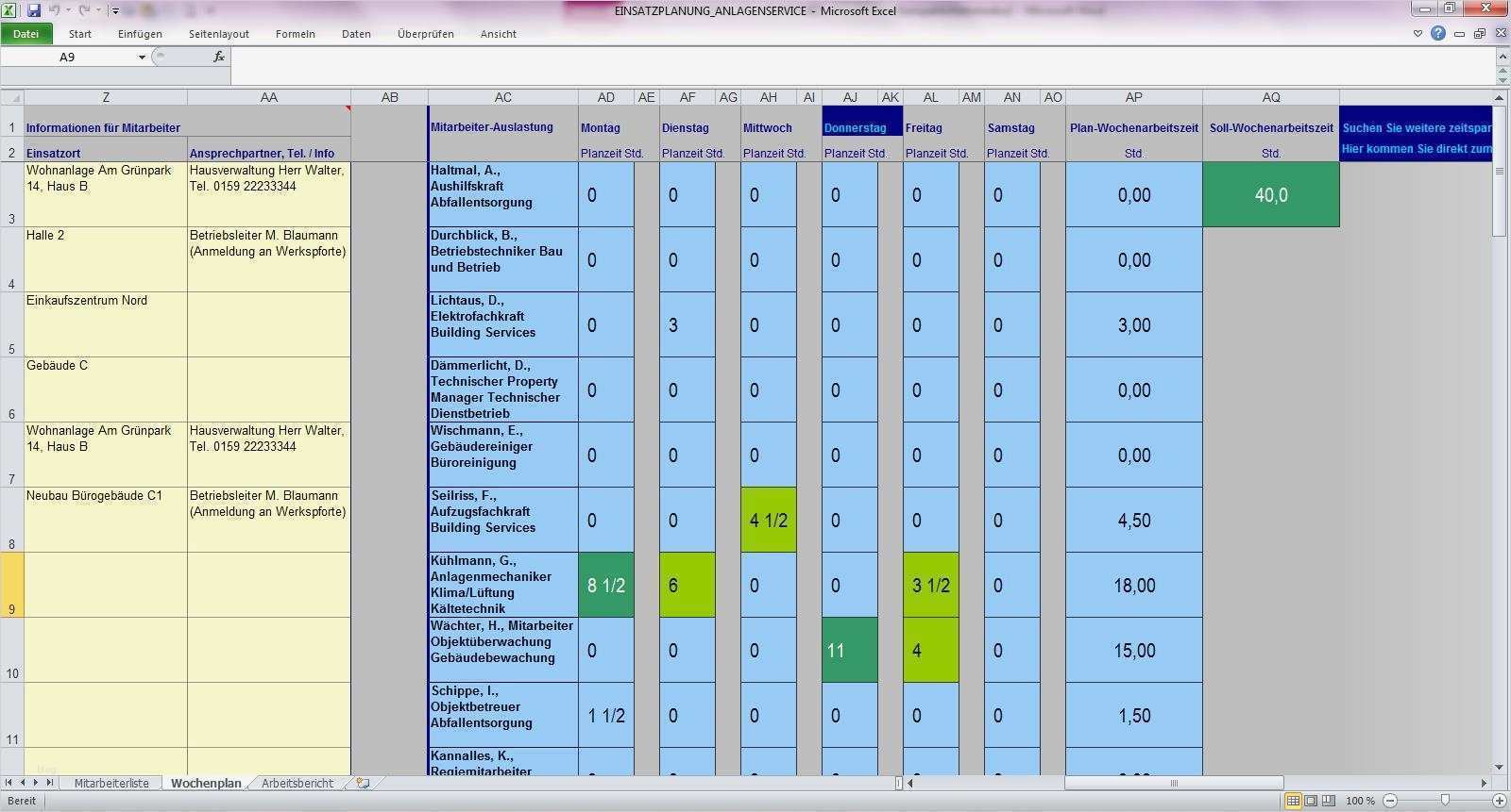 übersicht Projekte Excel Vorlage Wunderbar Mitarbeiter Einsatzplanung Gebäude Und Anlagenservice