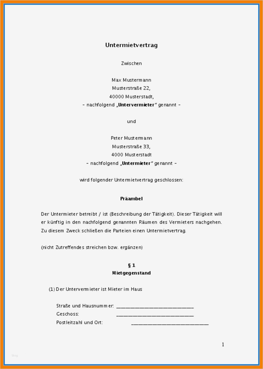 Untermietvertrag Vorlage Pdf Gut 15 Untermietvertrag Pdf