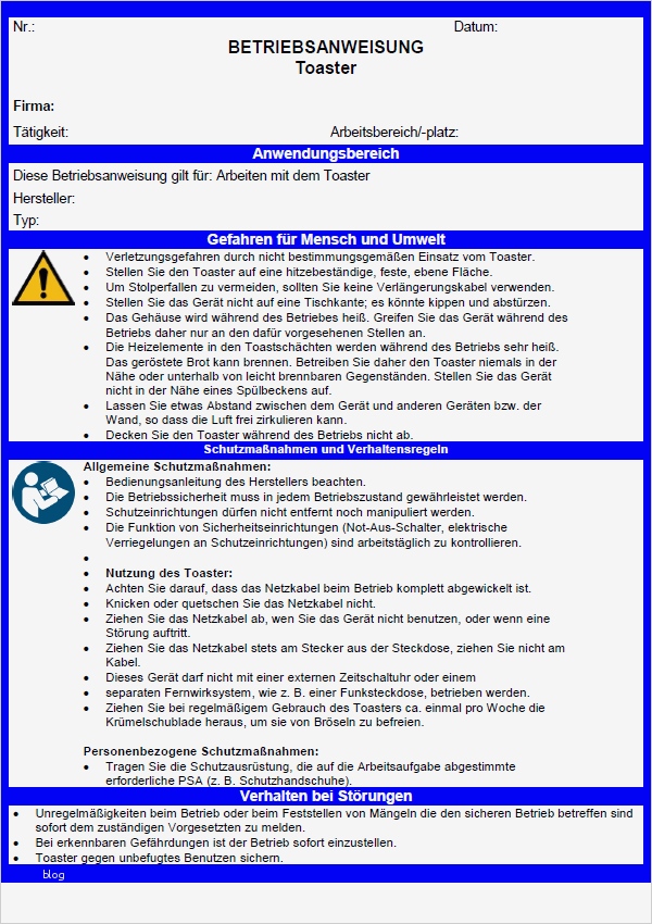 Galerie von Unterweisung Ladungssicherung Vorlage Hübsch Betriebsanweisung toaster sofort Download