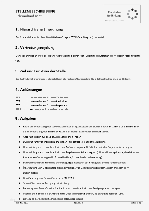 Verfahrensanweisung Vorlage Word Genial Fein Vorlage Der Stellenbeschreibung Ideen
