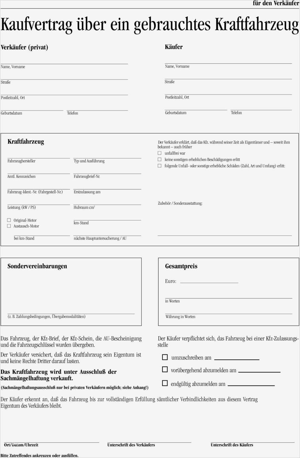 Süß Vertrag Autoverkauf Privat Vorlage