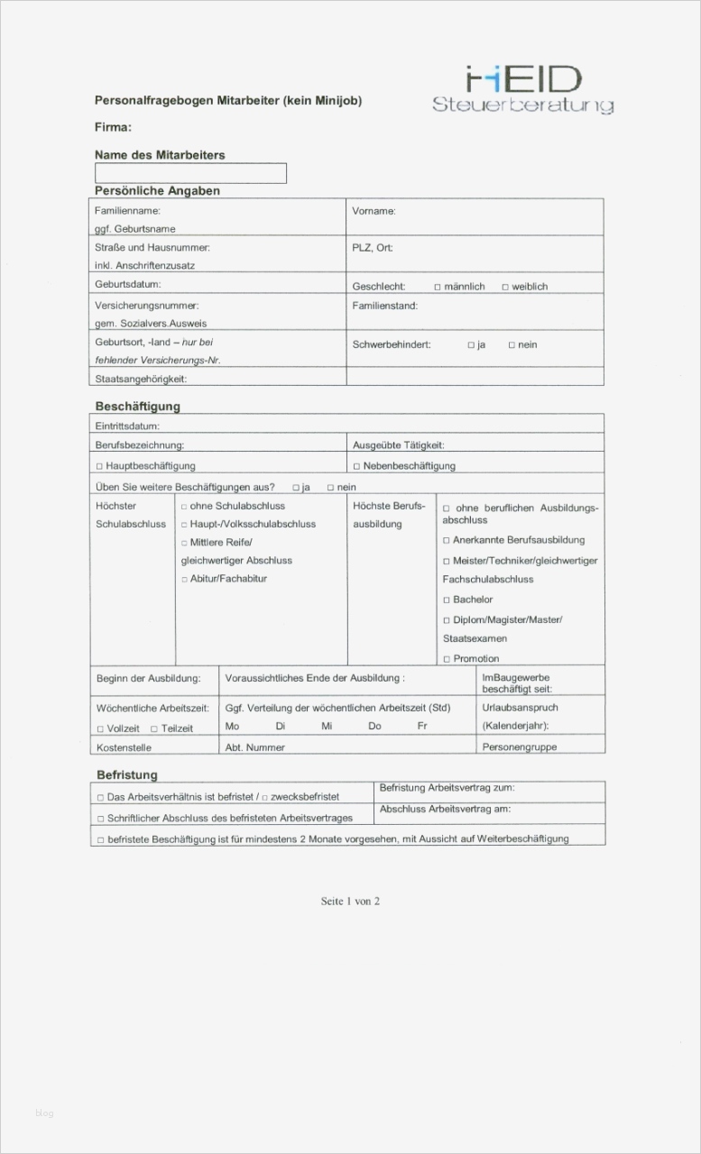 Vorlage Abrechnung Minijob Erstaunlich Personalfragebogen Richtig Ausfllen Richtige Vorbereitung