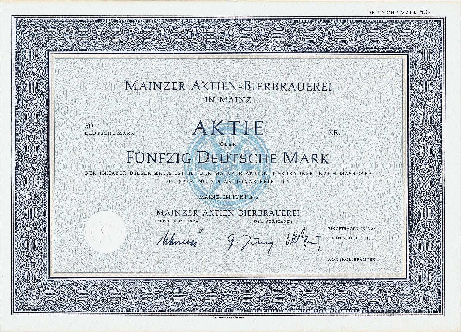 Vorlage Aktie Geschenk Schön Mainzer Brauereien Wertpapiere Und Urkunden
