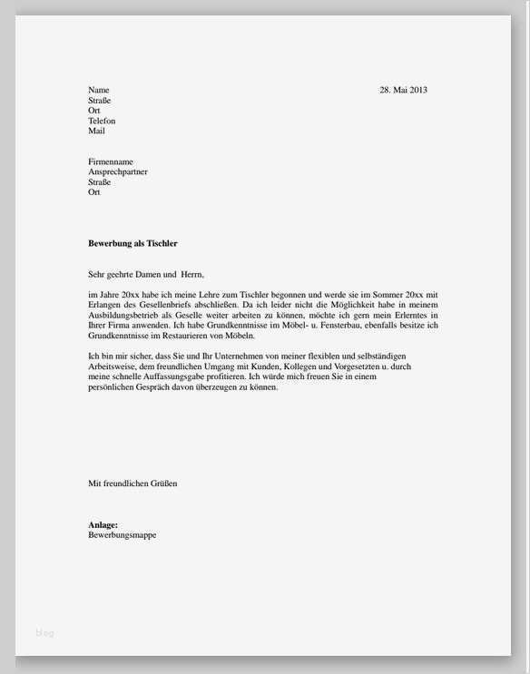Vorlage Allgemeine Bewerbung Bewundernswert Bewerbung Für Einen Tischler Muster