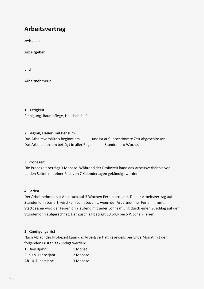 Genial Vorlage Arbeitsvertrag Haushaltshilfe