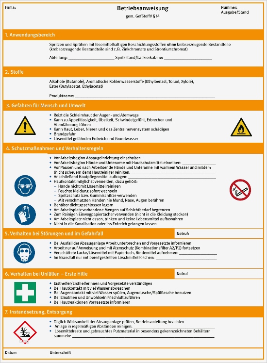 Vorlage Betriebsanweisung Gefahrstoffe Süß Dguv Information 209 046 Lackierräume Und Einrichtungen