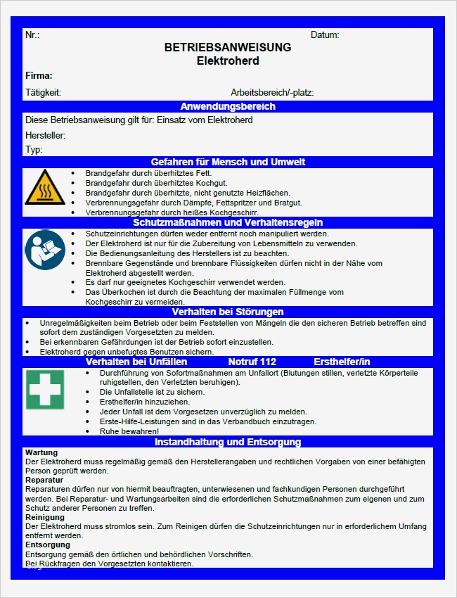 Beste Vorlage Betriebsanweisung