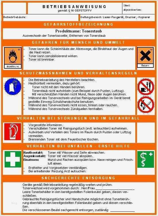 Vorlage Betriebsanweisung Süß Ergo Online Betriebsanweisung tonerwechsel