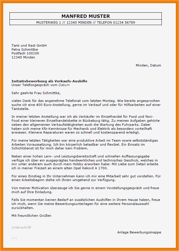 Vorlage Bewerbungsschreiben Aushilfe Großartig 13 Bewerbung Muster Minijob