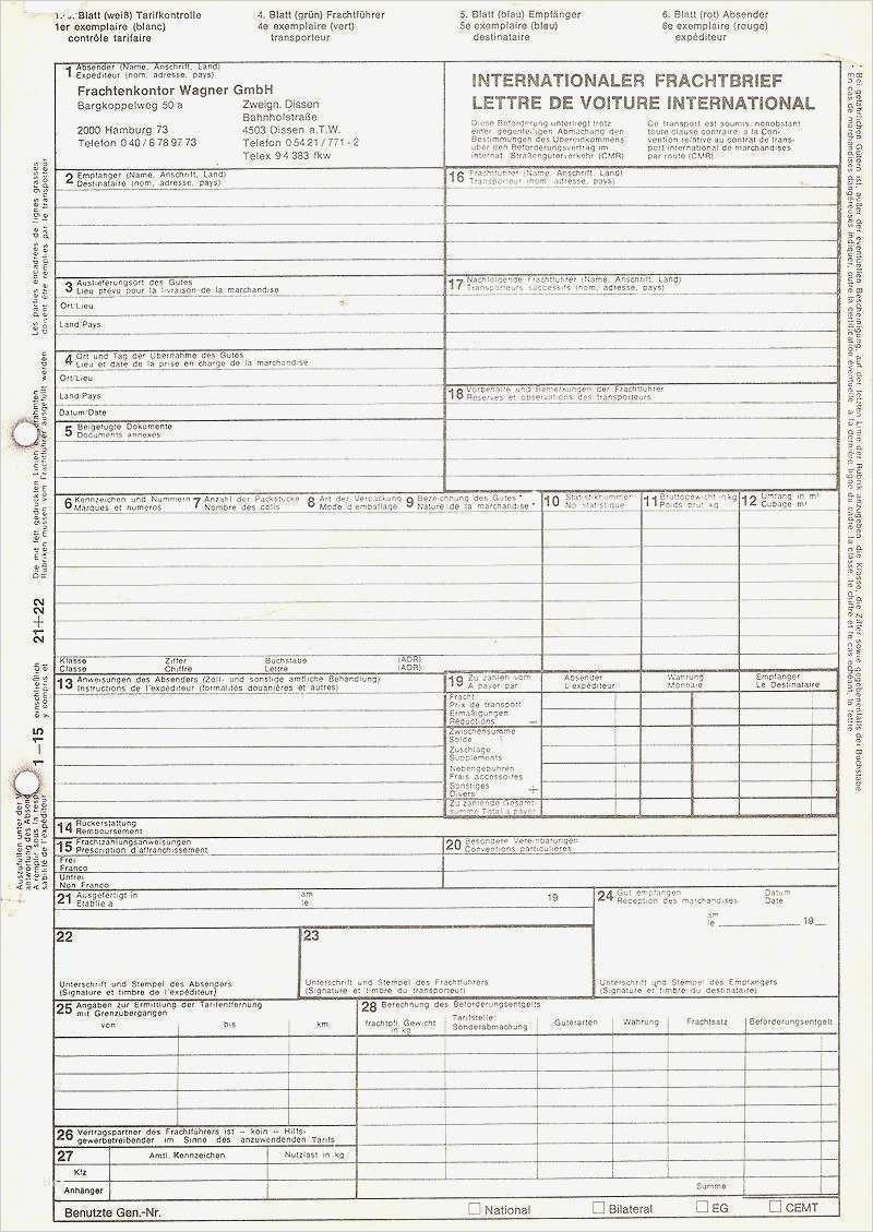 Angenehm Vorlage Cmr Frachtbrief