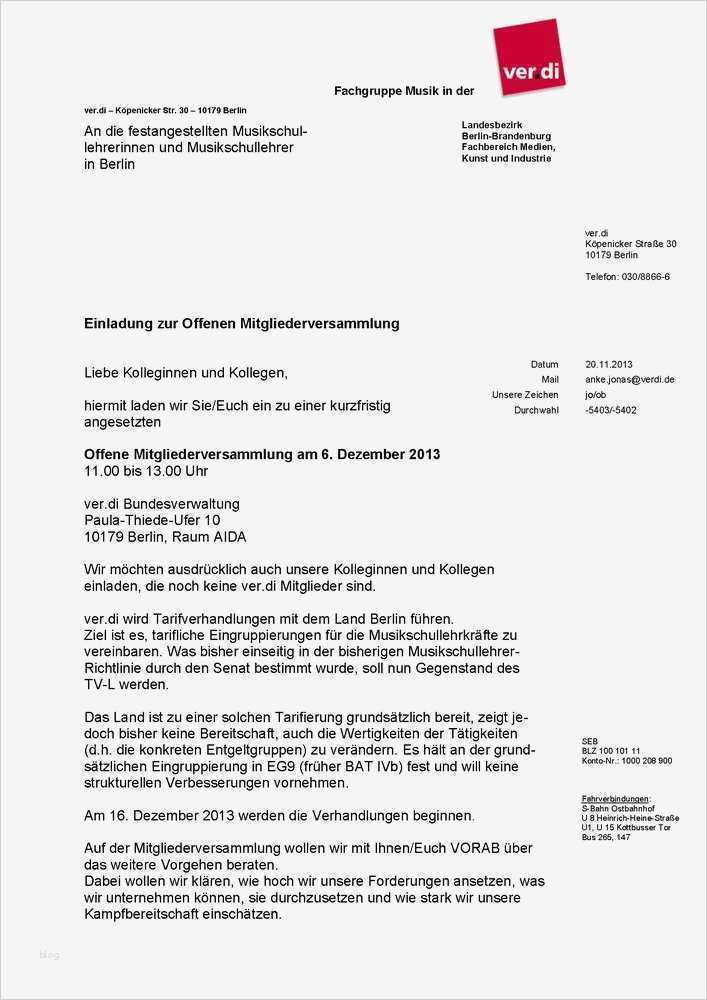 Vorlage Einladung Mitgliederversammlung Verein Neu Ver Di – Einladung Zur Fenen Mitgliederversammlung